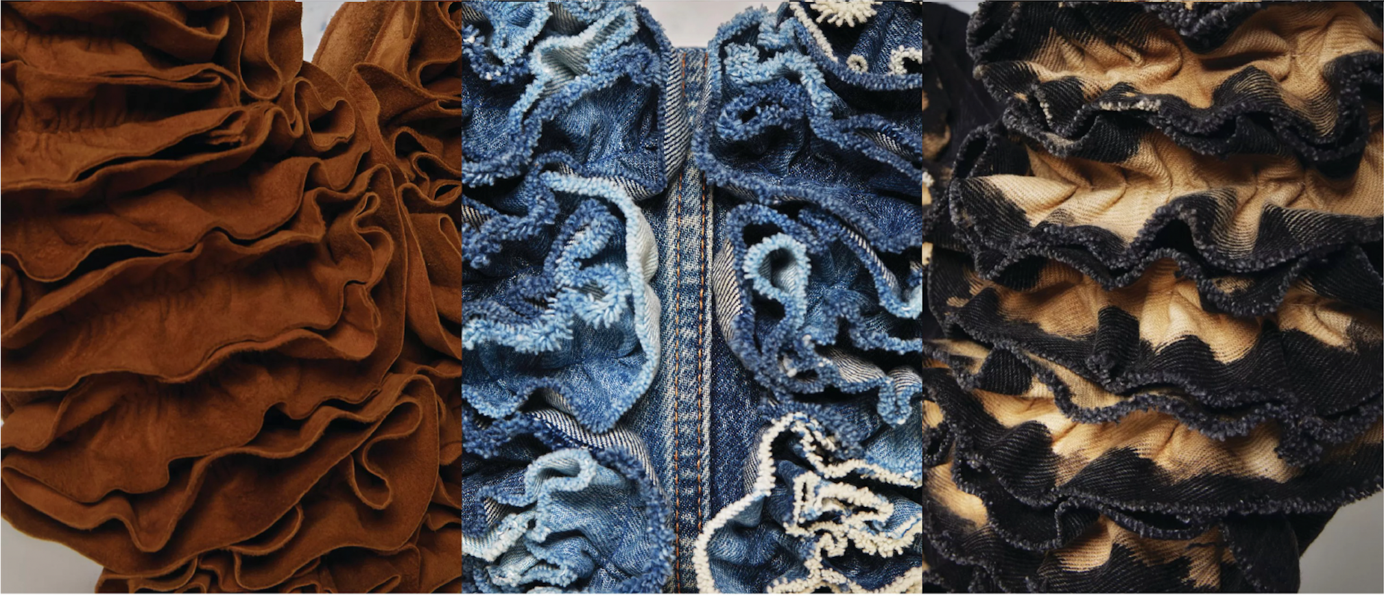 BAGS ACCESSORIES builT on A philosophy of repurposing materials through upcycling and craftmanship TULIP BIG BAG - BLEACHED BLACK DENIM TULIP MINI BAG - BLEACHED BLUE DENIM RUFFLED BUCKET BAG - BLEACHED BLACK DENIM EXPLORE MORE